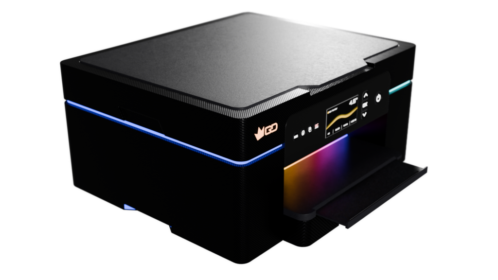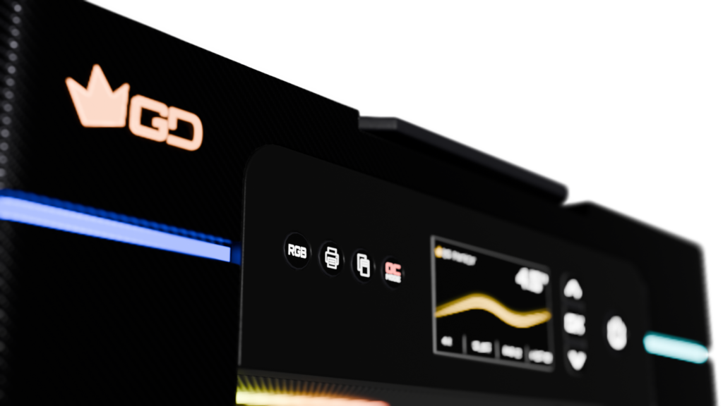 A GD Carbon OC não é apenas uma impressora; é uma declaração de intenções. Ela entra na tua setup e diz: “Sim, eu imprimo, mas eu imprimo rapidamente e com estilo.”
