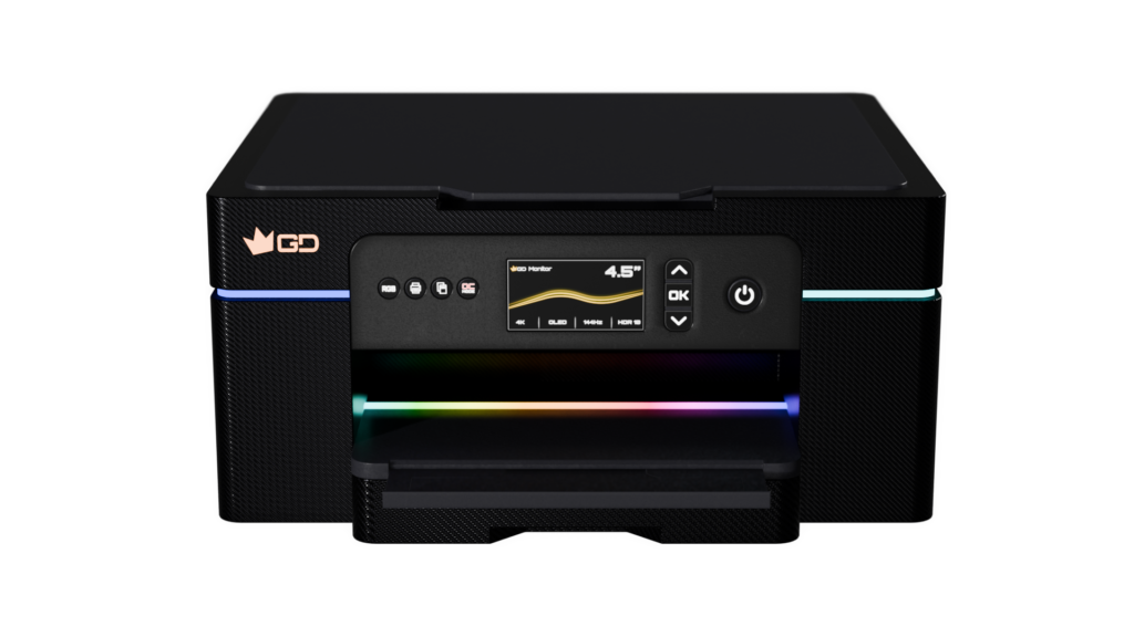 Tecnologia de TintaGD PrintOLEDPretos Black Hole Black e gama de cores RGB e CMYK alargadas.