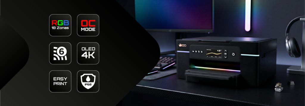 • RGB 18 Zonas: Sim, a Carbon OC tem mais zonas de RGB do que a maioria dos teclados high-end. Podes sincronizar o brilho da tinta com o teu jogo usando o software GD-RGB-Link. Queres que a tua impressora fique vermelha a piscar quando a tua vida está baixa? Done.