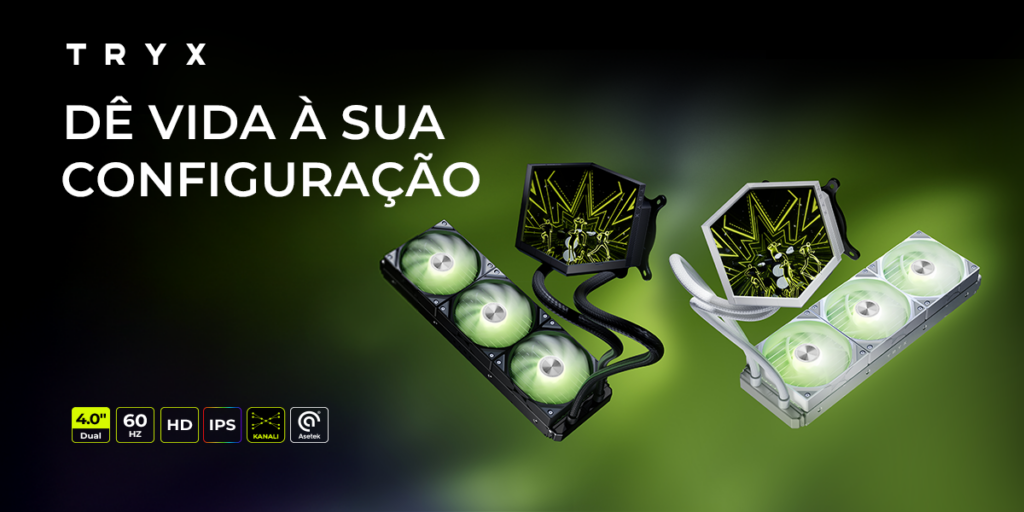 O TRYX Stage 360 AIO não é apenas mais um water cooler no mercado; é uma peça de engenharia desenhada sob o mote “Bring Your Act to Life” (Dê vida à sua configuração).