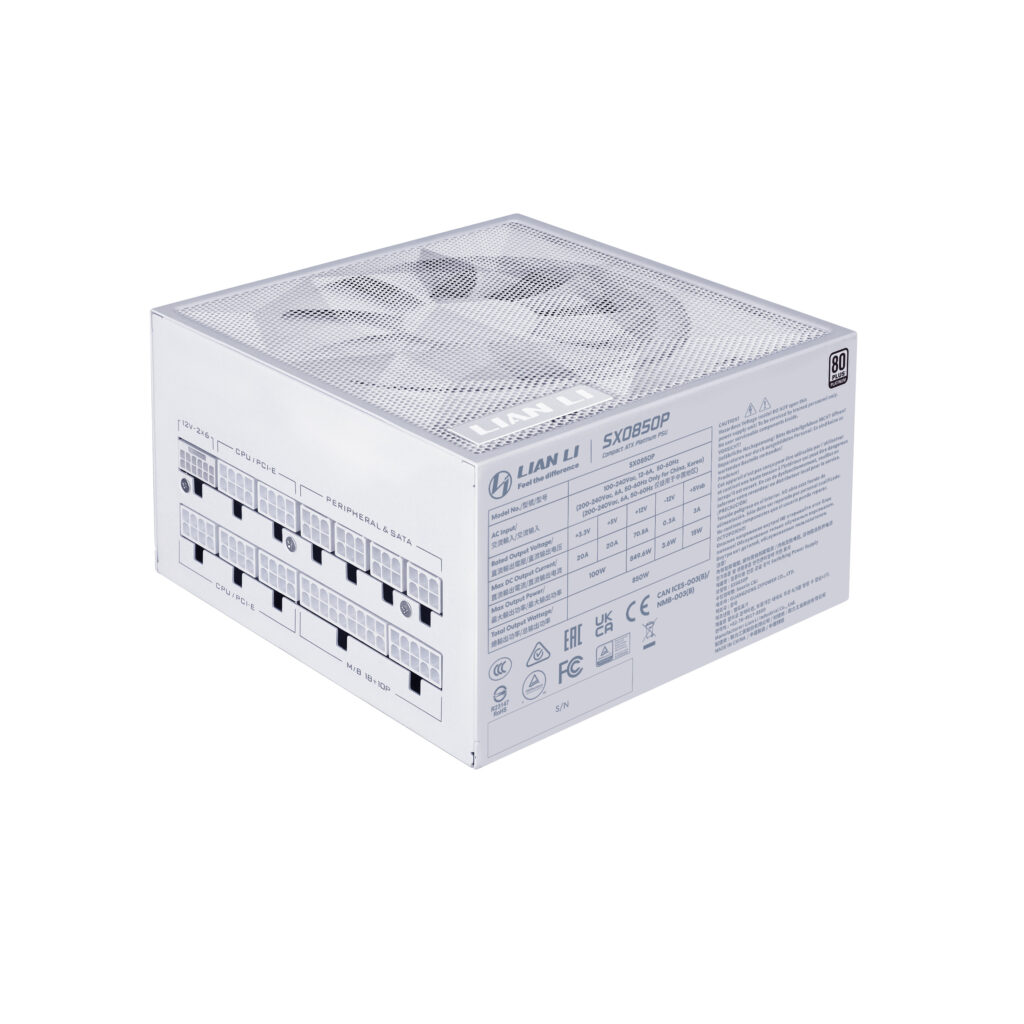 Uma fonte de alimentação da Lian Li Série SX é projetada para suportar o hardware mais recente e de melhor desempenho para cargas de trabalho de gaming e criativas. Com uma gama de opções de entrega de energia disponíveis, incluindo 850W, 1000W e 1200W, estas PSUs estão preparadas para fornecer energia ampla até mesmo aos componentes com maior consumo de energia.