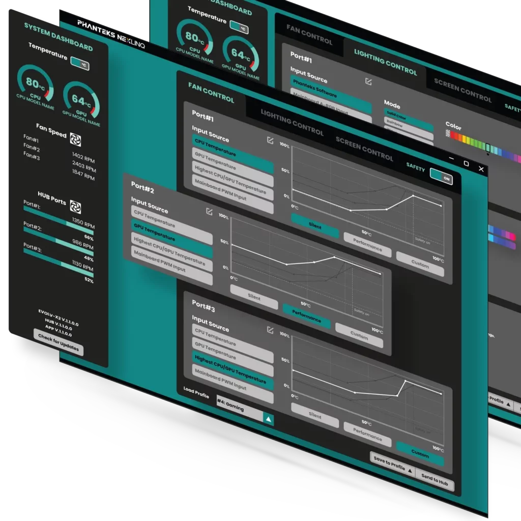 Cada um destes ecrãs é simples de controlar, pois todos são compatíveis com a aplicação Phanteks NEXLINQ para Windows. Com este programa leve, terás uma gama de controlos para ajustar a aparência do teu ecrã.