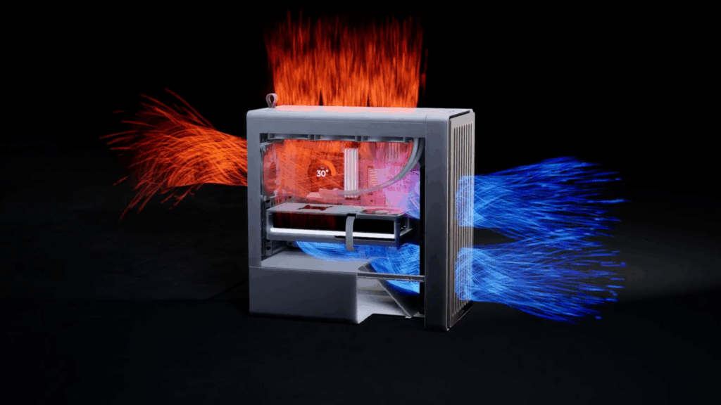 Existem dois modelos na série BF, a BF e a BF Flow. Ambos utilizam a mesma base e funcionalidades, proporcionando um desempenho térmico incrível. A BF não tem ventoinhas pré-instaladas, permitindo-te experimentar diferentes tamanhos ou utilizar a sua solução de arrefecimento já testada e comprovada. O BF Flow, no entanto, vem com três ventoinhas pré-instaladas. No painel frontal estão duas ventoinhas HAVN H18 e na parte traseira está uma ventoinha HAVN H14. Isto proporciona um excelente arrefecimento pronto a usar, deixando ainda espaço para hardware adicional.