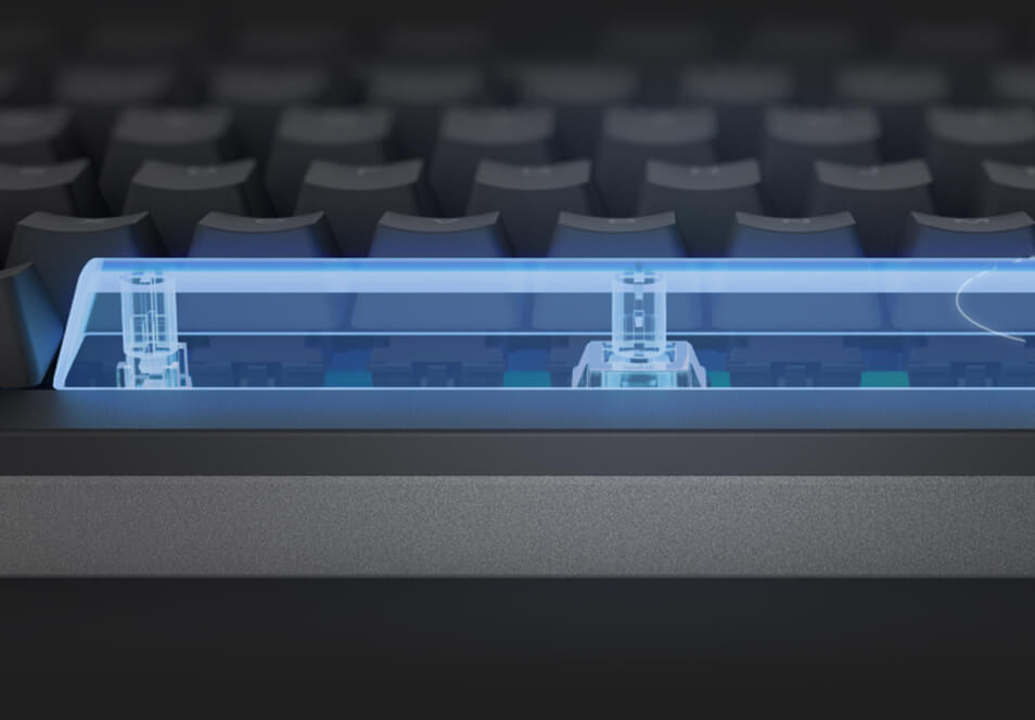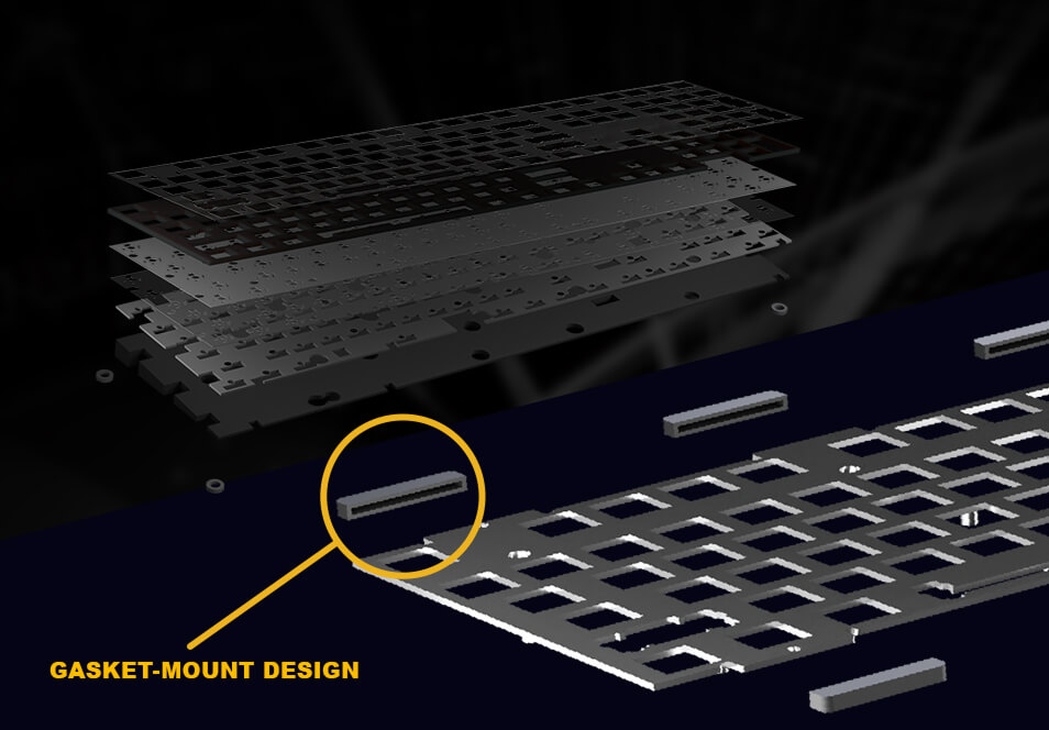 - Construção com montagem Gasket-mount e design de amortecimento em Poron para uma experiência de digitação premium