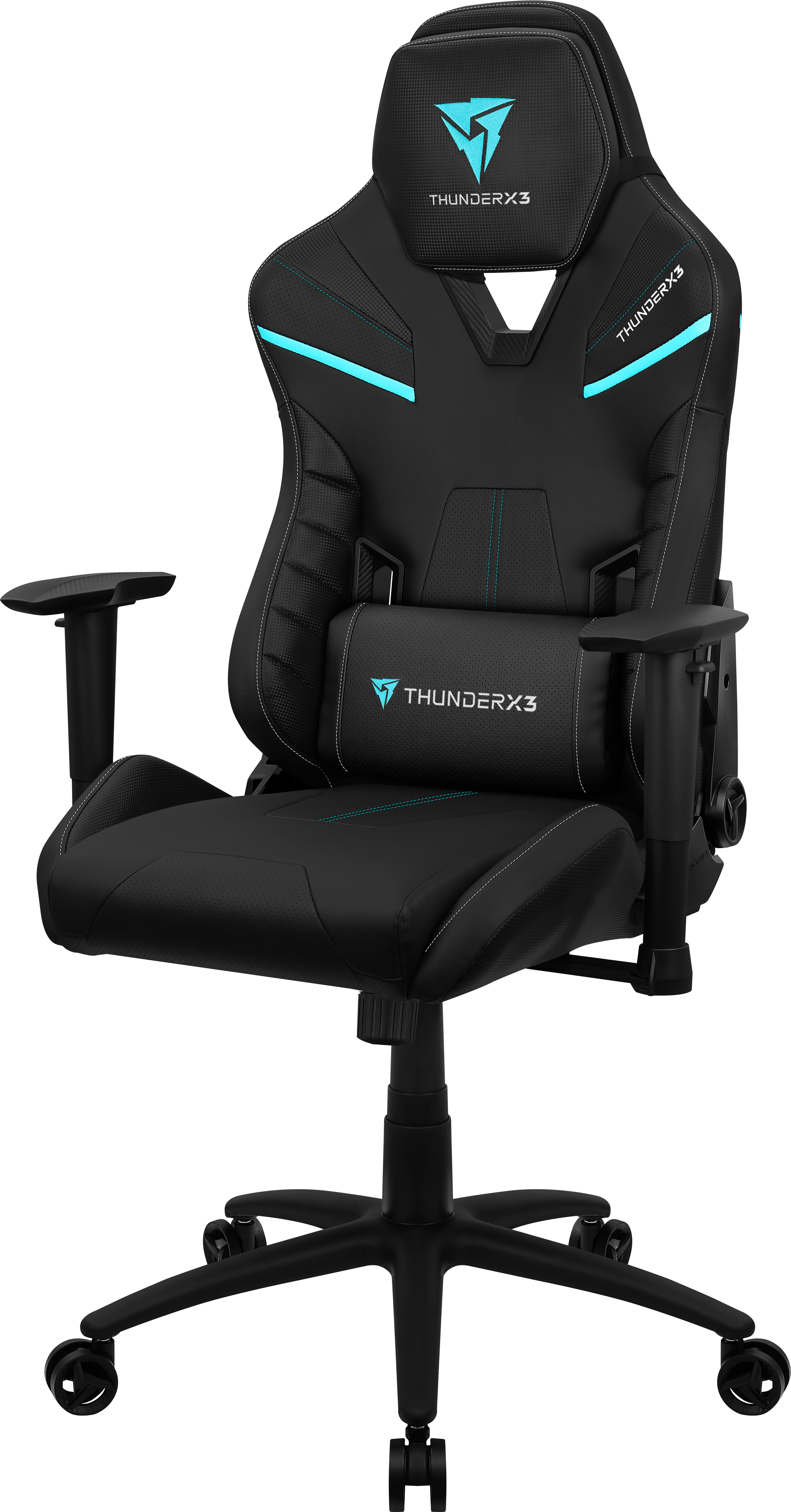 Apresentando um design interno elegante e bonito, as tampas laterais, apoios de braços e rodas das cadeiras gaming TC vêm com um logótipo ThunderX3 gravado que dá um ar de elegância e de requinte.