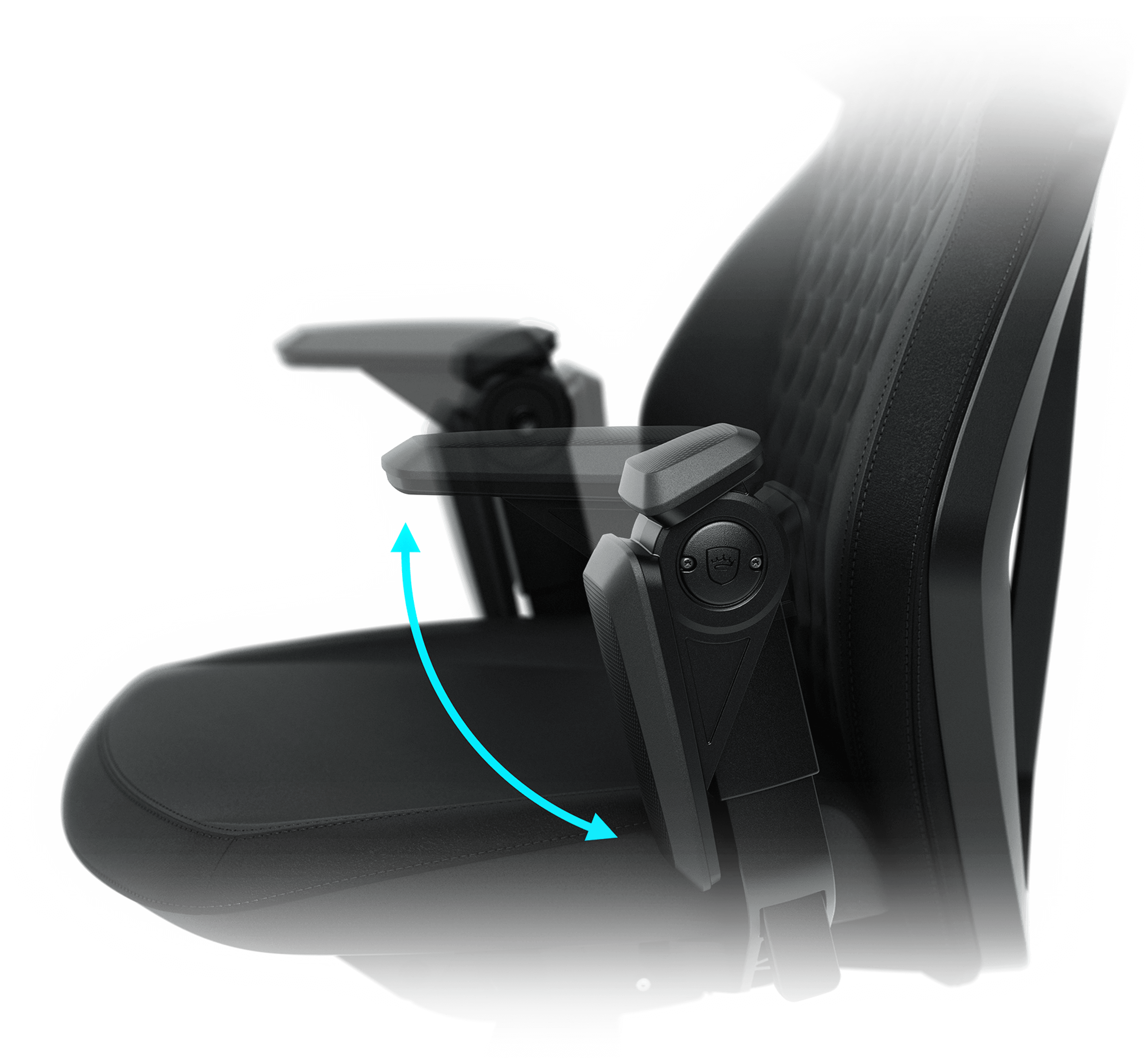 Os apoios de braços dobráveis da DAWN proporcionam um apoio flexível, adaptando-se facilmente aos modos de gaming, descanso ou trabalho concentrado. Este design garante que pode alternar sem esforço entre posições de assento ou de apoio de braços.
