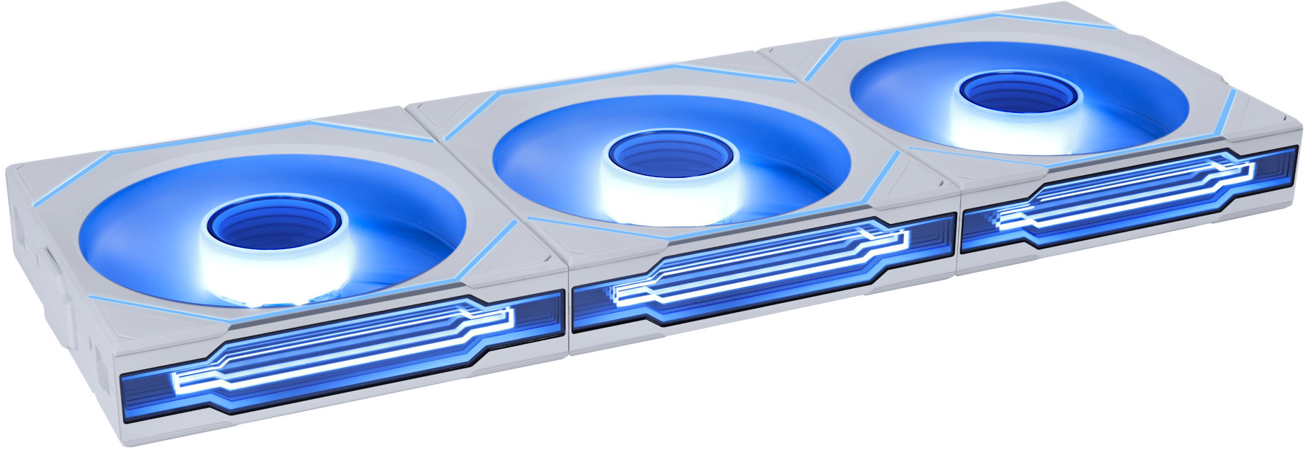 O controlador incluído é o SLIN120 Triple Pack, que suporta até 16 ventoinhas (4 ventoinhas em cada grupo) e 2 dispositivos de ligação do tipo SM. Controlar e pré-visualizar com precisão o efeito de iluminação das ventoinhas SL-Infinity com a nova interface L-Connect.