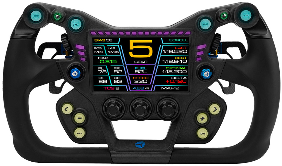 Com o volante Cube Controls GTX2, vai elevar o seu setup de simulação de corridas a um novo patamar. A construção em alumínio e carbono, combinada com um revestimento de material altamente aderente, proporciona uma experiência de condução duradoura e valoriza significativamente o seu equipamento.